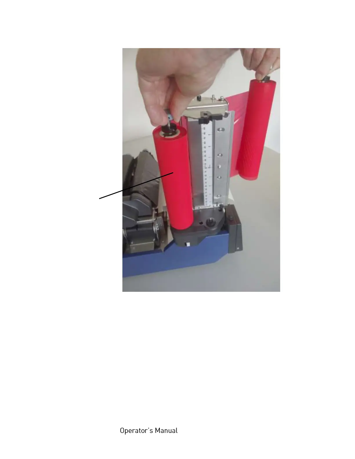 Fig. 5.2.4.d Holding the takeup mandrel and unlocking the supply mandrel