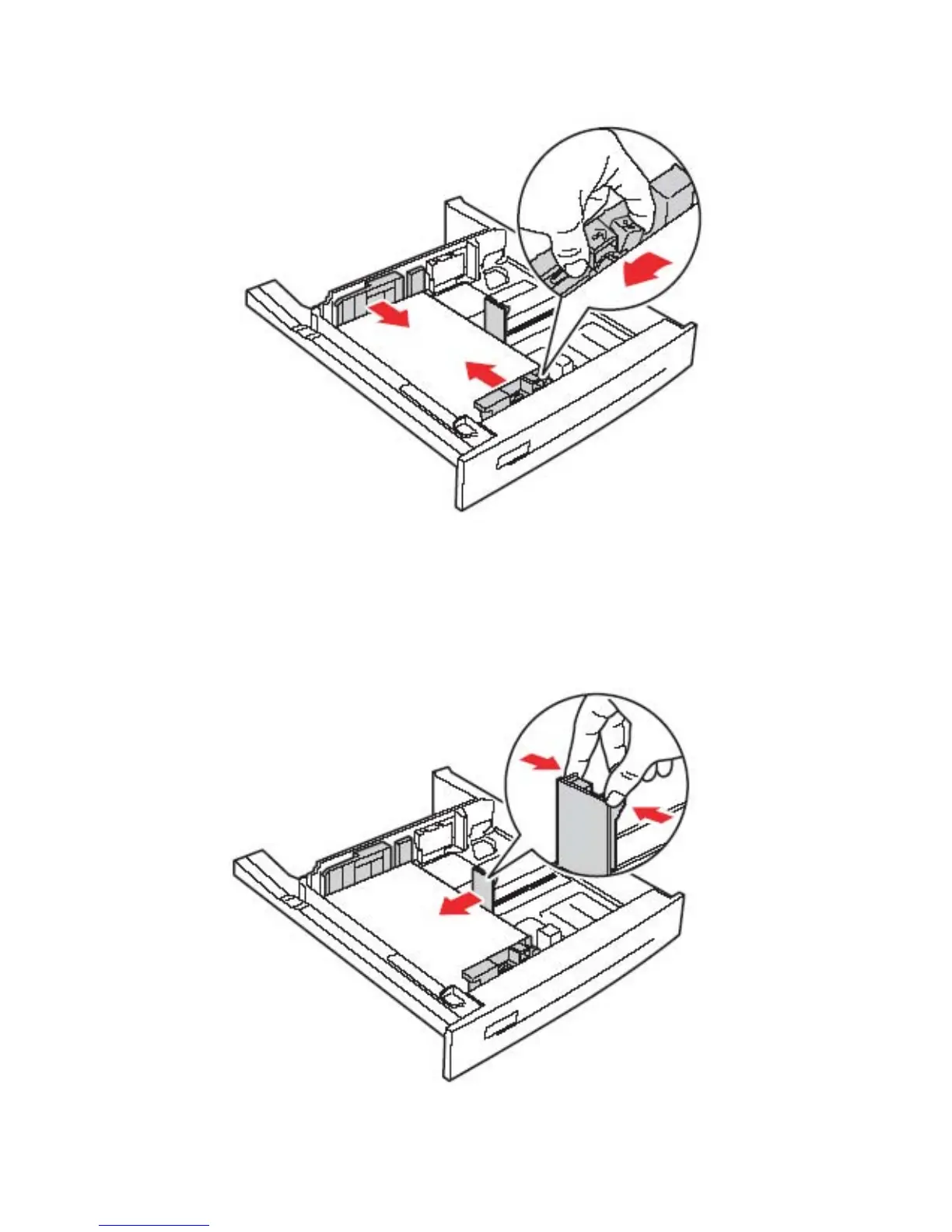 8. Press the levers of the side guide and slide it to the left until it lightly