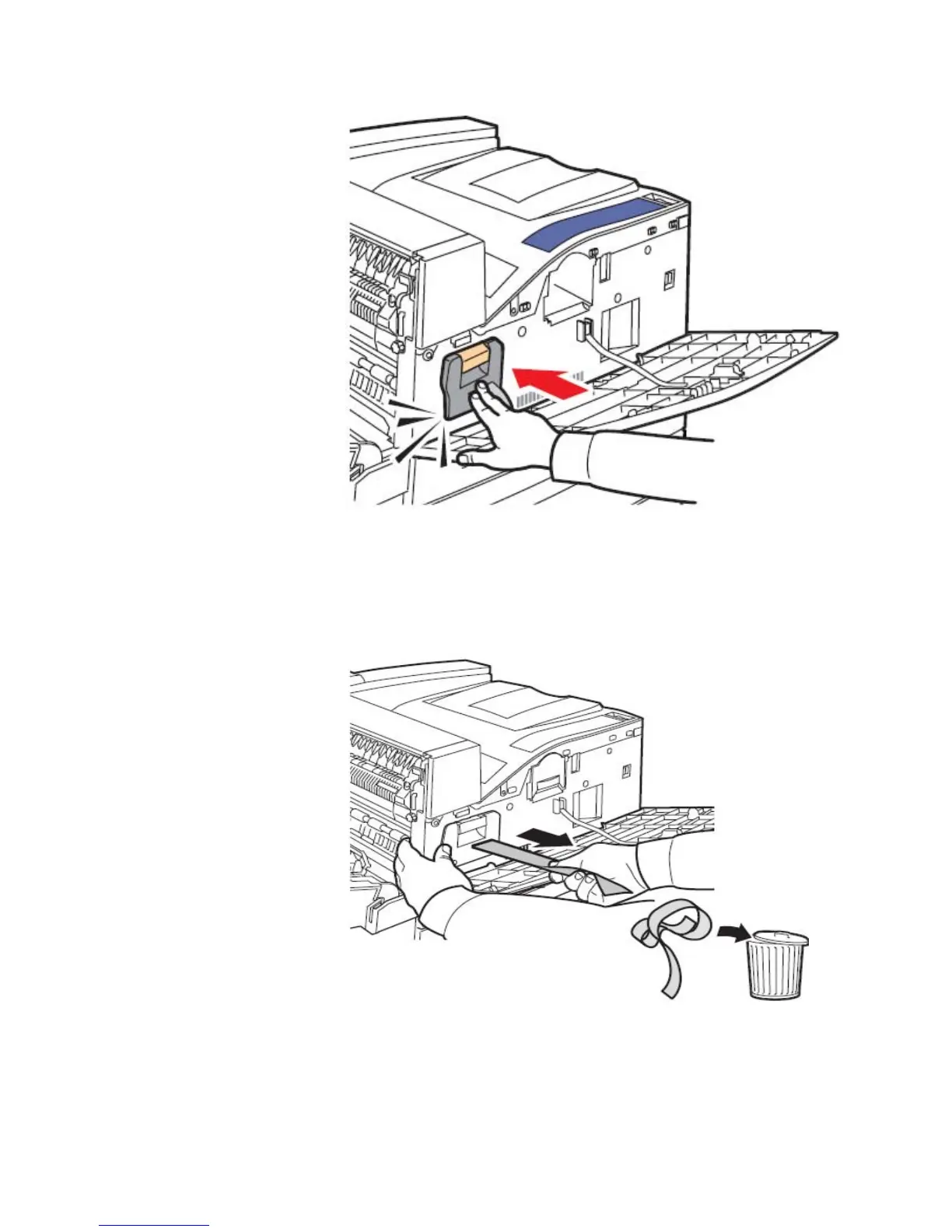 14. Carefully pull the yellow tape completely out of the cartridge.