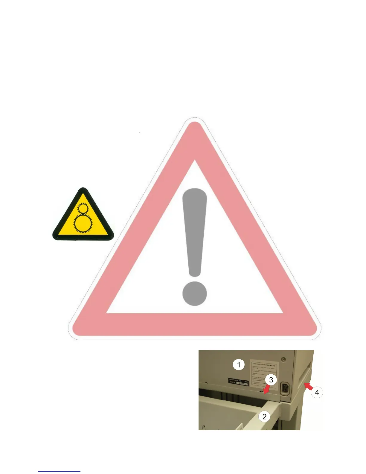 Caution, the chain of the motor to move the paper exit tray up