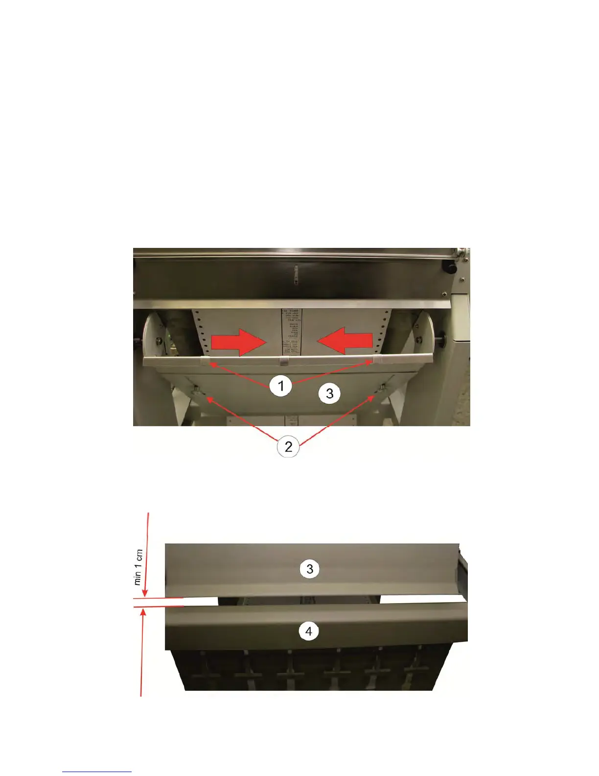 – Move the front and rear metal stripes (1) in direction of the arrows.