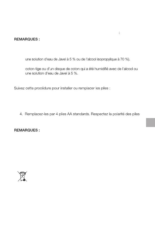 (extrémités + et –) lorsque vous les placez dans le compartiment à piles.
