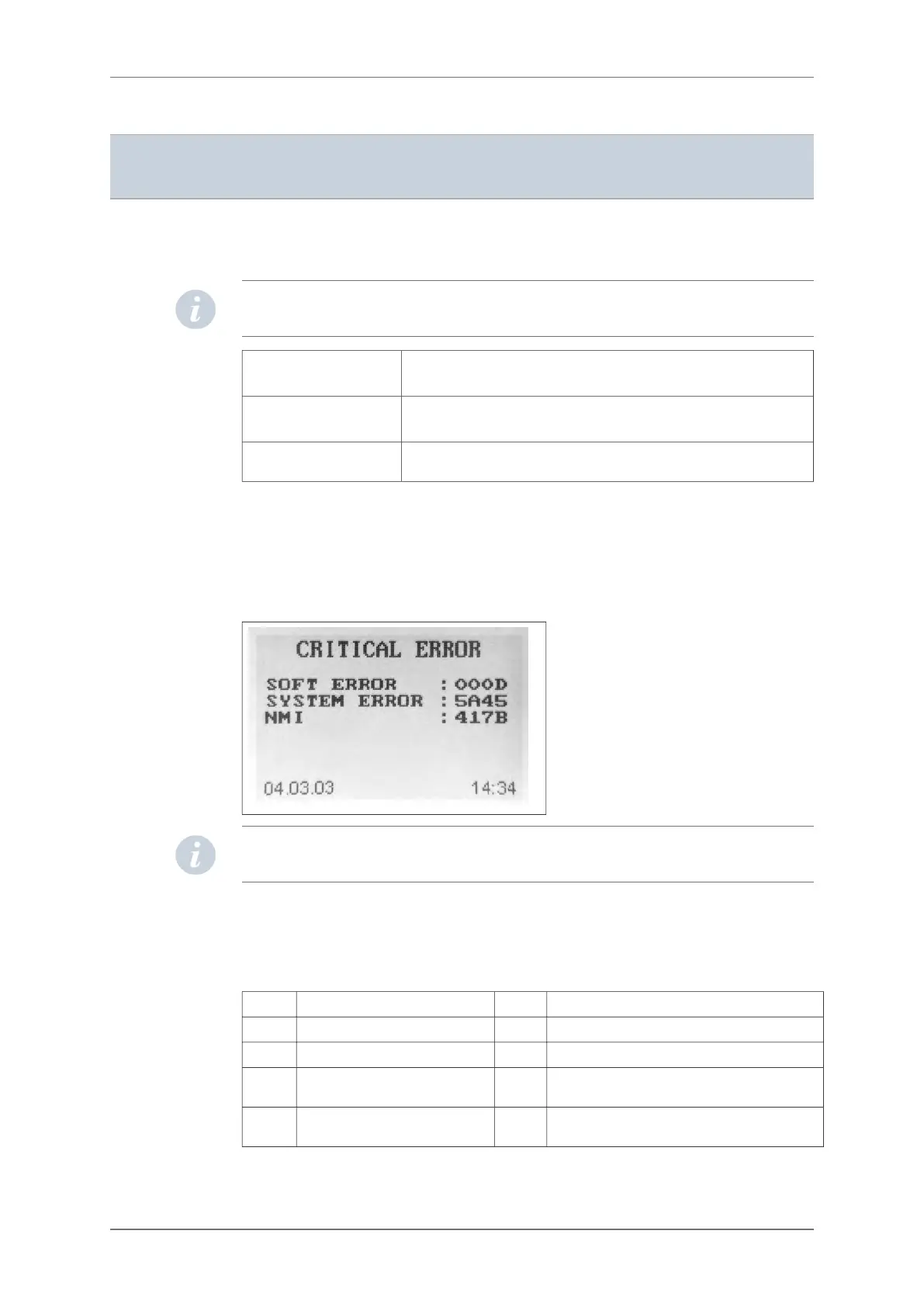 auto-test phase. The “Critical error” screen will then be shown until the left arrow button (3) is