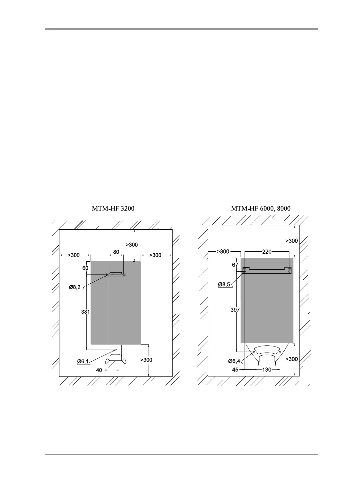 I caricabatterie MTM-HF 6000 e 8000 richiedono almeno 300 mm di spazio