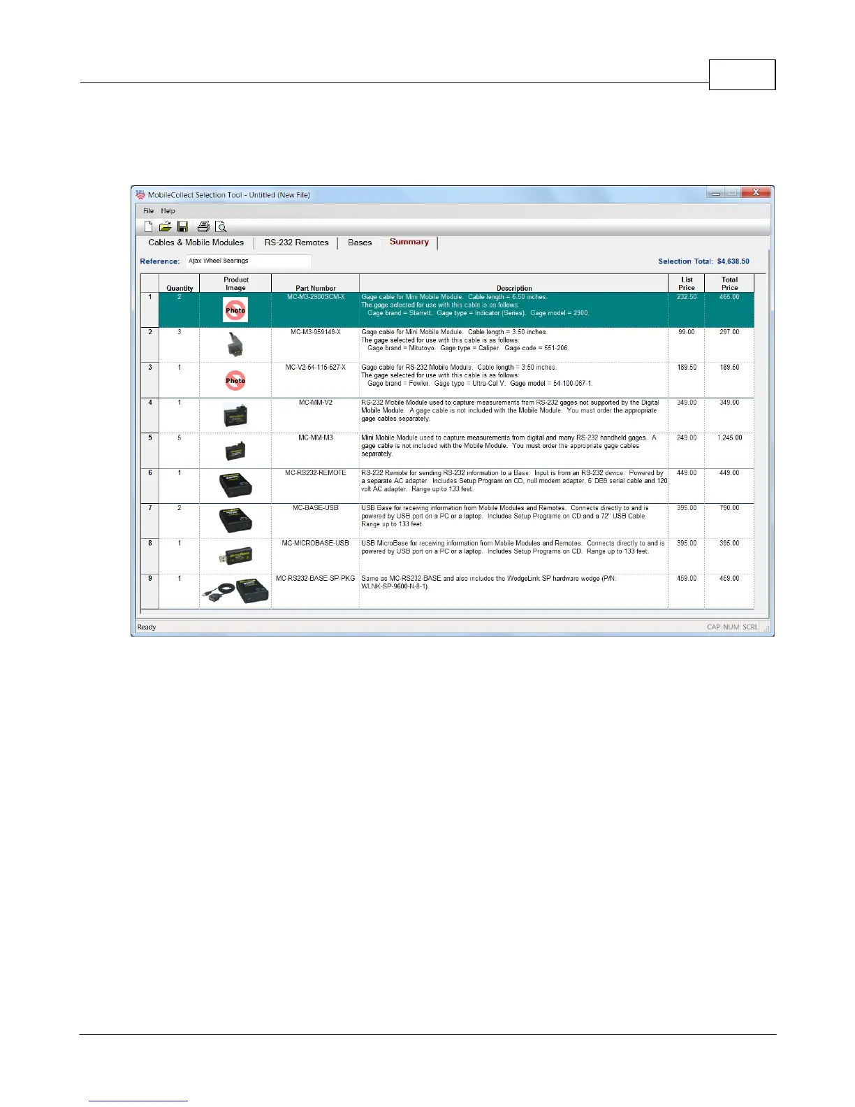 The Summary tab displays the results of the the gage cables, Remotes and Bases that have
