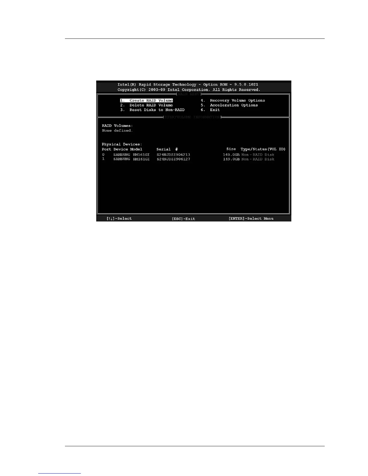 6. Press [Control-I] to enter the ‘Intel Rapid Storage Technology Option