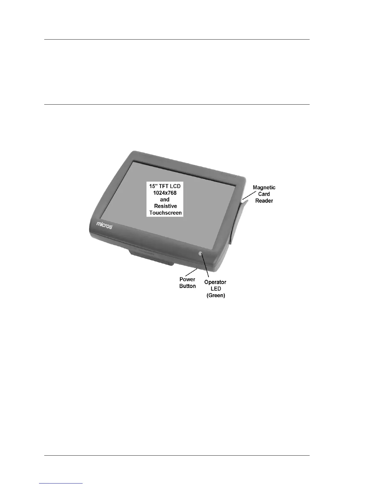 Green Operator LED, Magnetic Card Reader, and 15” LCD/Touchscreen.