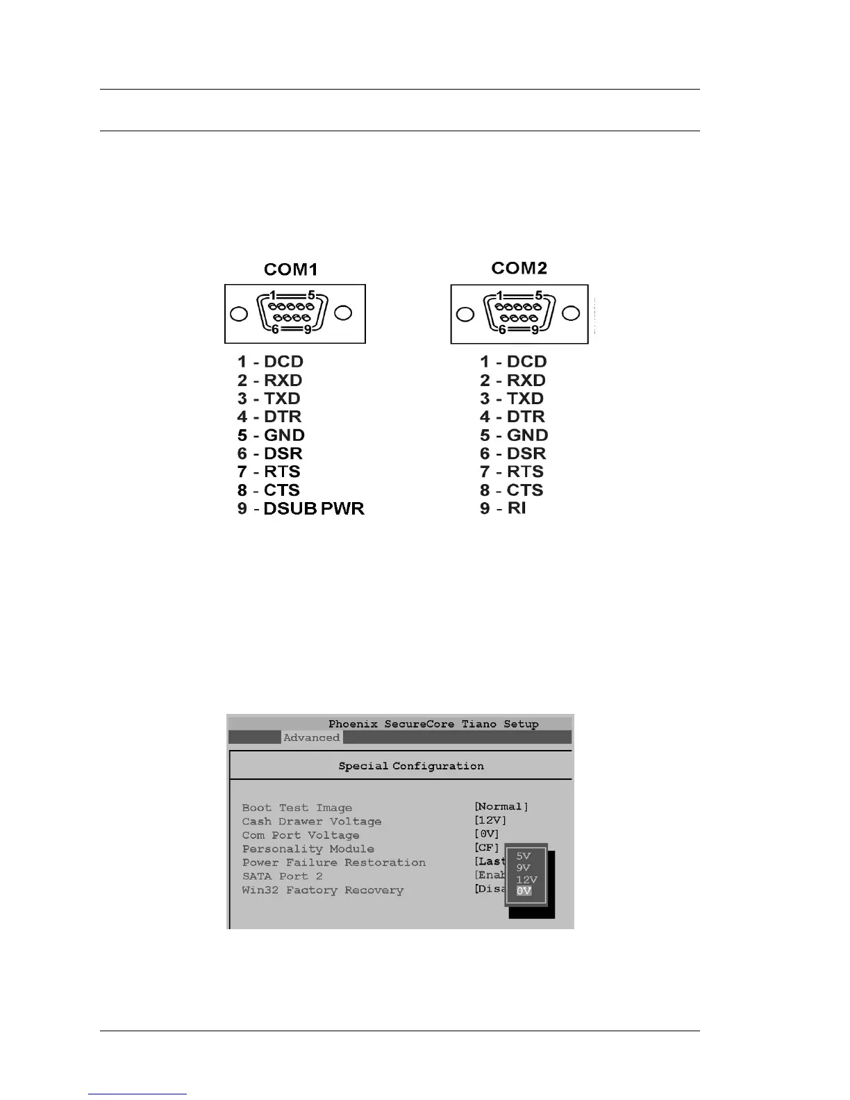 For COM1, the DSUB Pin voltage is determined by the COM Port Voltage