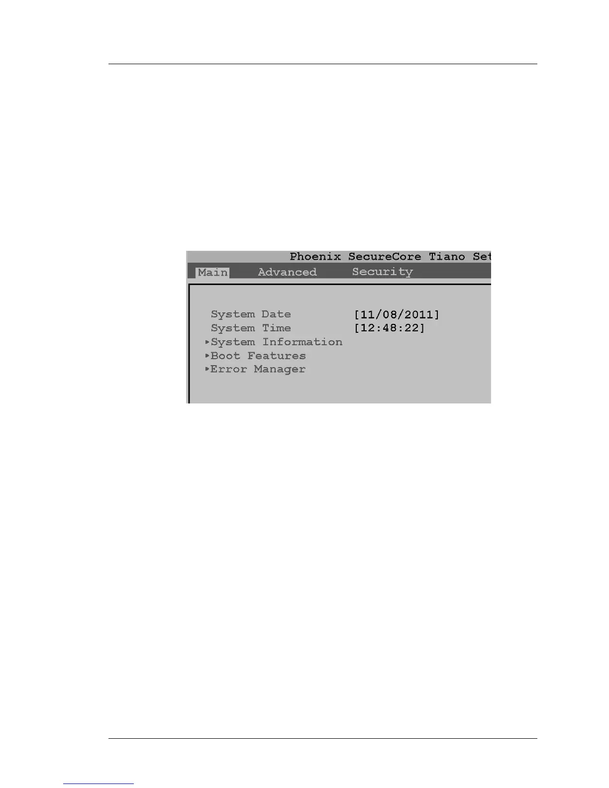 A section of the Phoenix SecureCore Tiano Setup Main screen shown