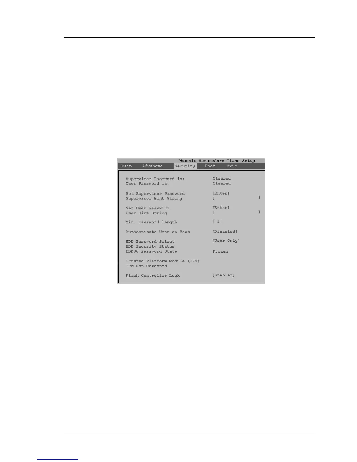 The Phoenix SecureCore Tiano Setup screen example is shown in the Figure