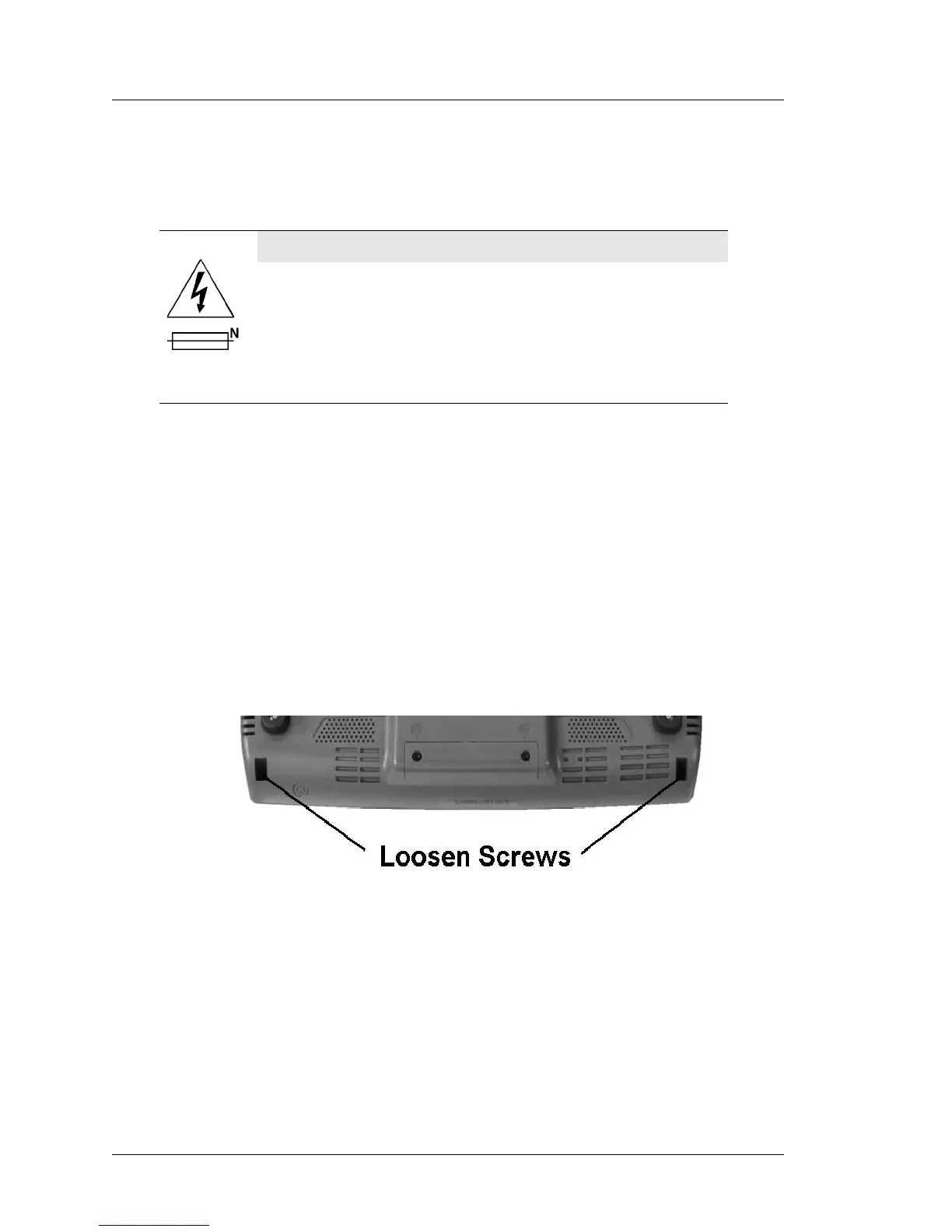 3. Loosen the captive screws as shown. Return the unit to the normal