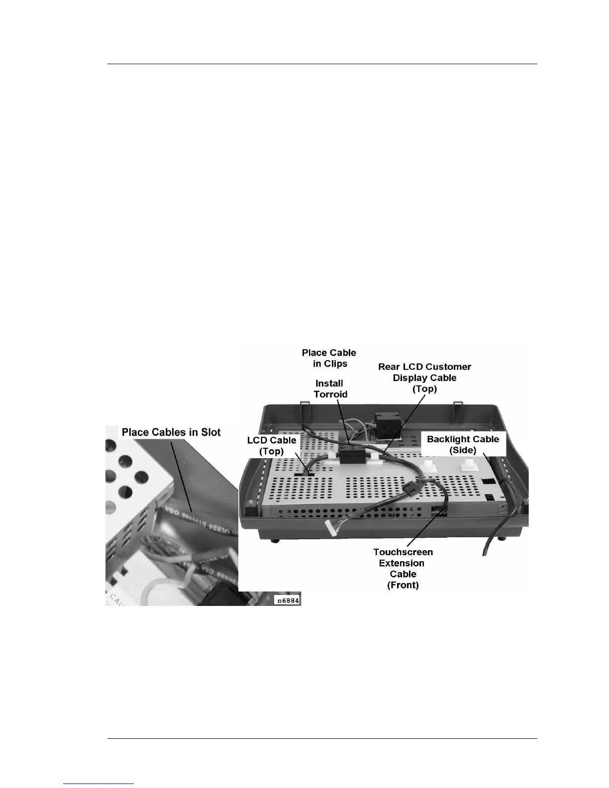 o If installed, route the optional customer display cable through the