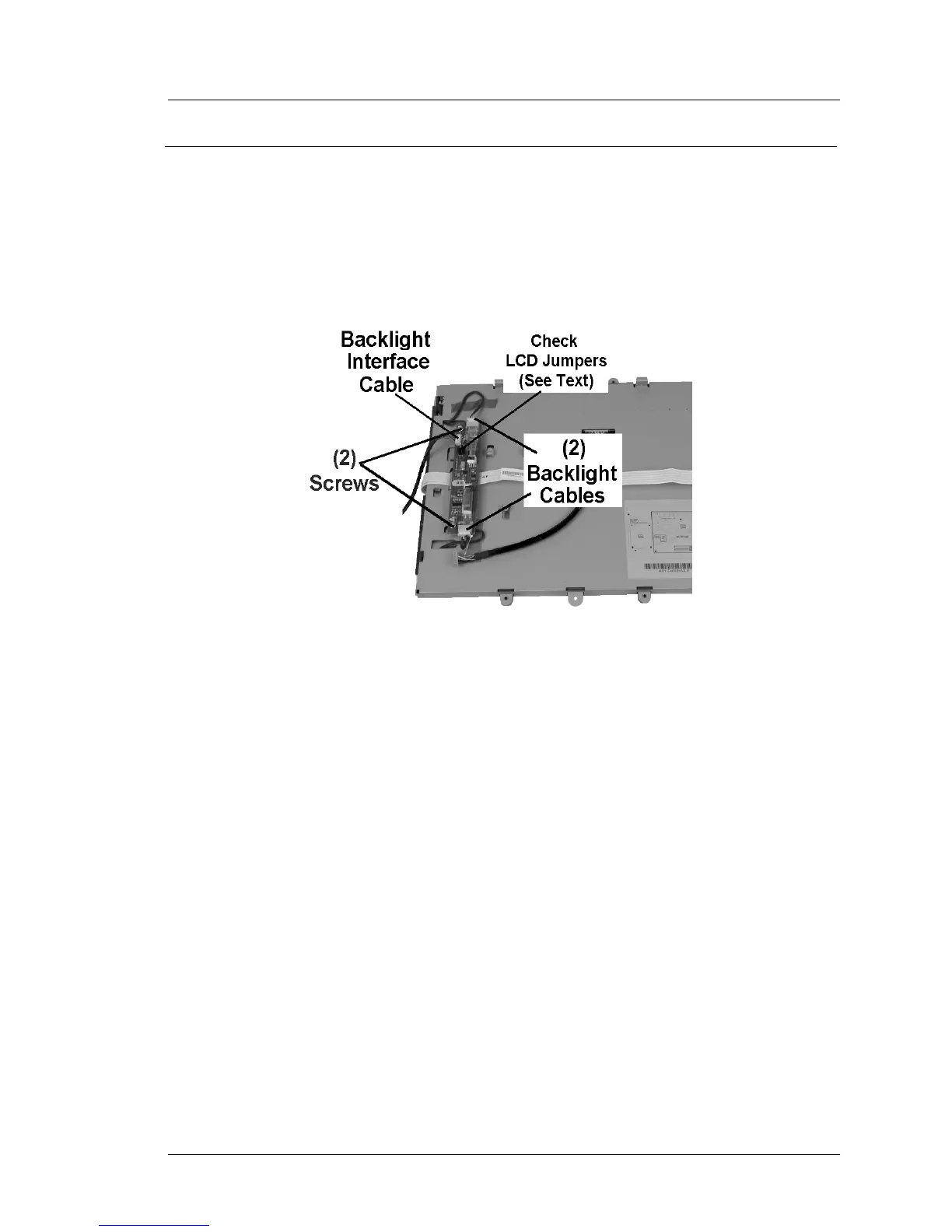 2. Refer to Figure 4-15 and remove the Backlight Cables. Remove the pair of