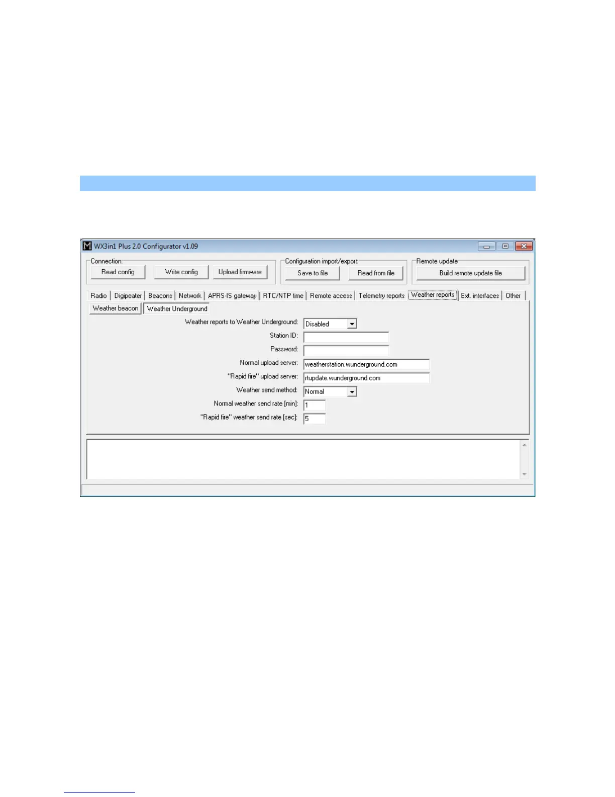 • “Rapid fire weather send rate [sec]” – Frequency of “rapid fire” realtime report