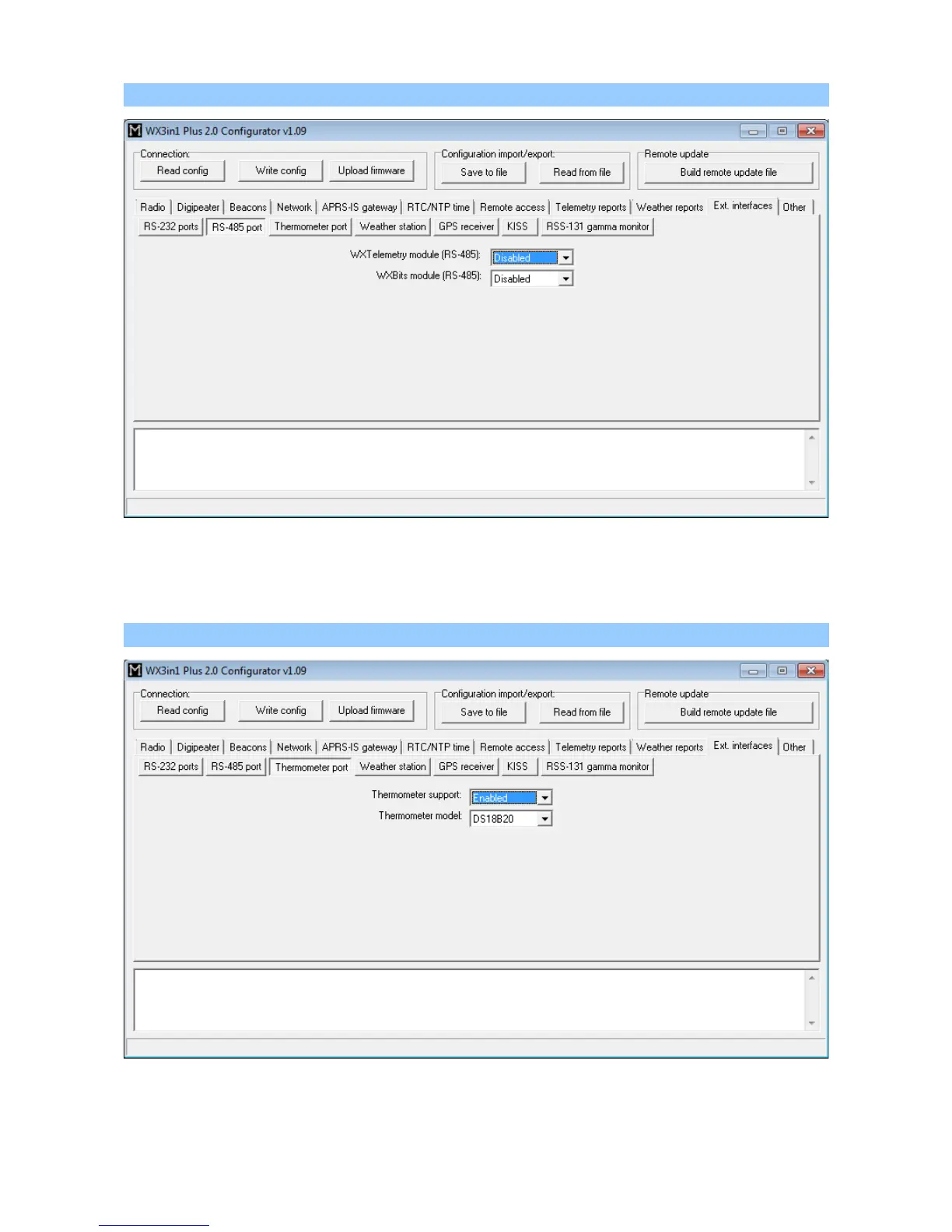 • “WXTelemetry module (RS-485)” - enables or disables WXTelemetry module