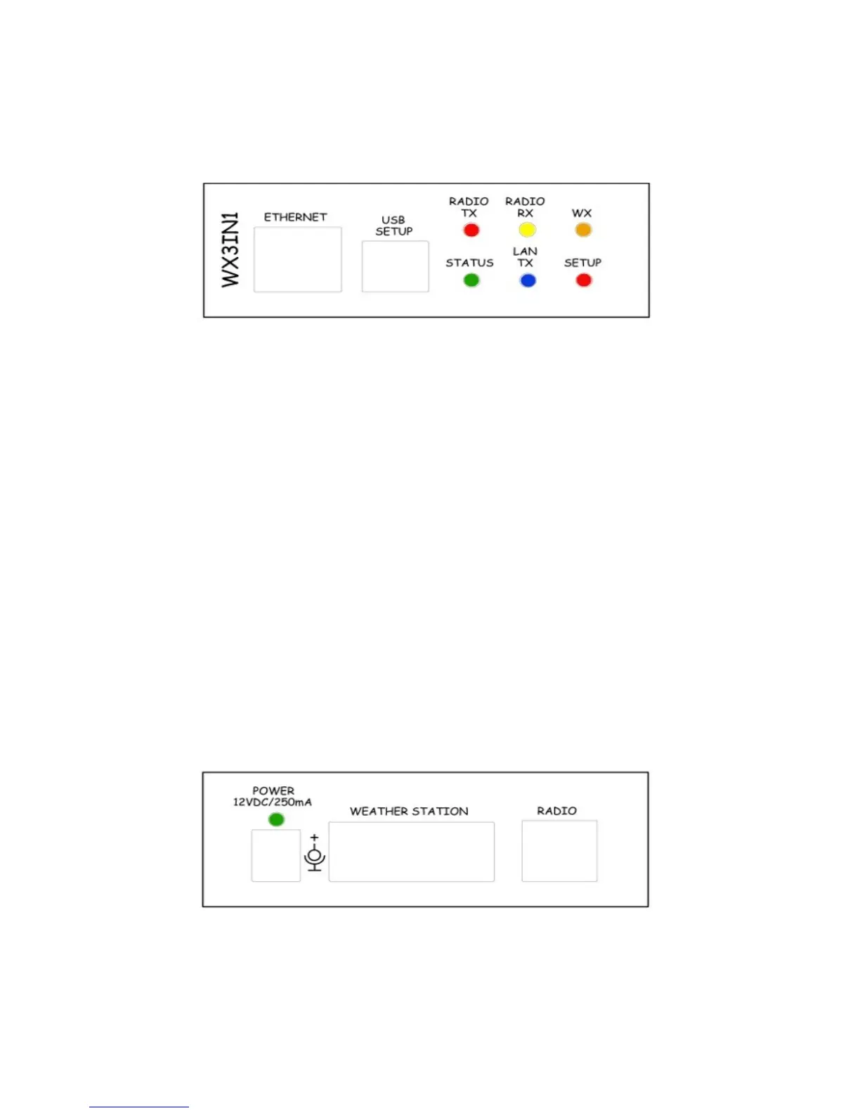 • WX - Orange LED indicates proper communication with weather station, it blinks