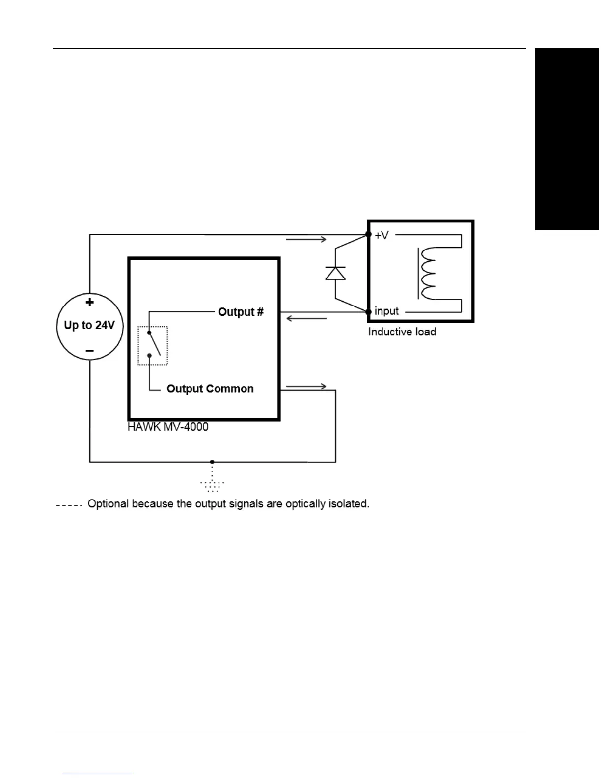 To connect a HAWK MV-4000 output signal to an inductive load input, follow the diagram