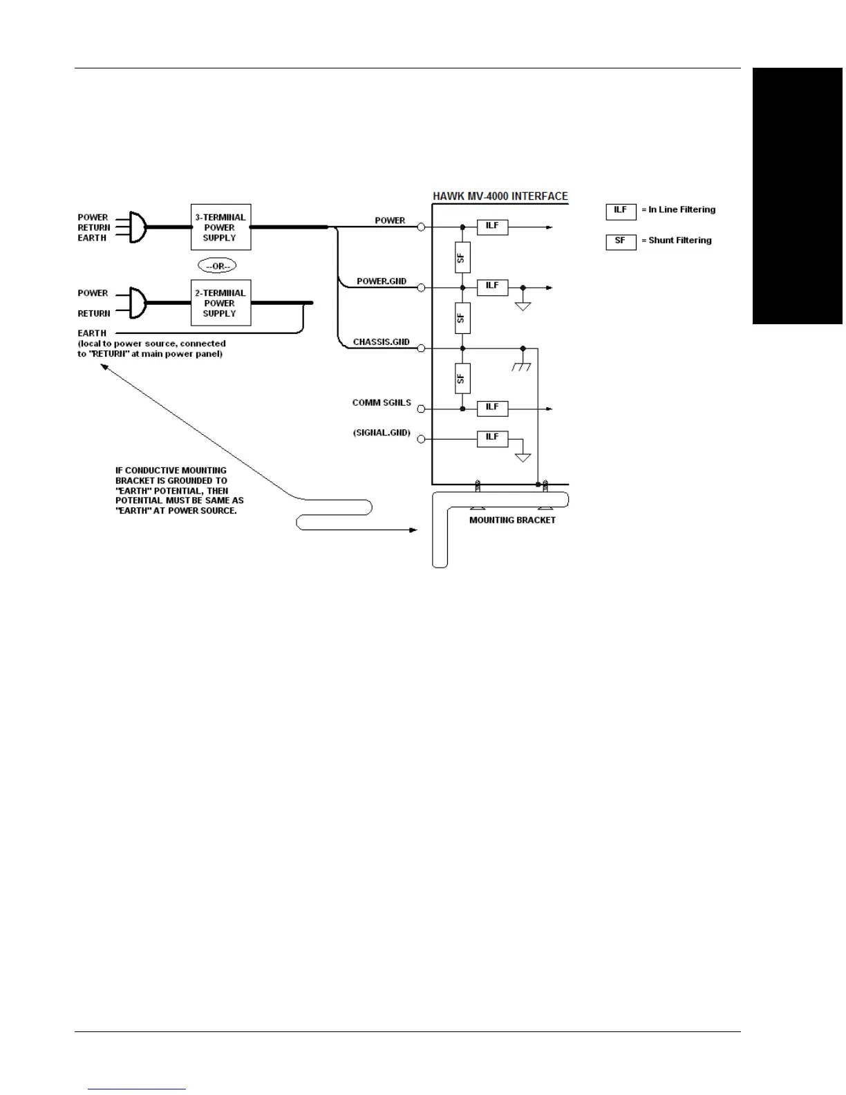 • Ensure that mounting bracket “Earth” is at the same potential as power source “Earth”.