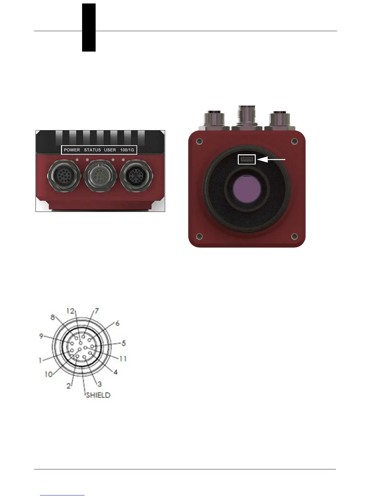 connector, 100/1000 Base-T connector, the VGA/USB connector, and the liquid lens connector.