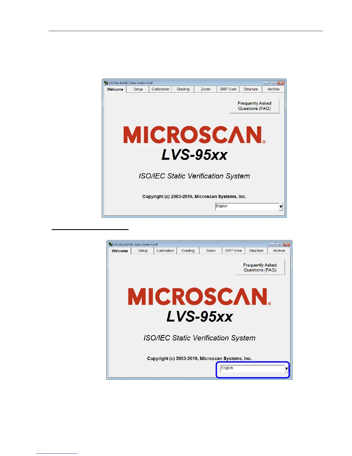 Microscan LVS-9500 - Welcome Tab; Choice of Language