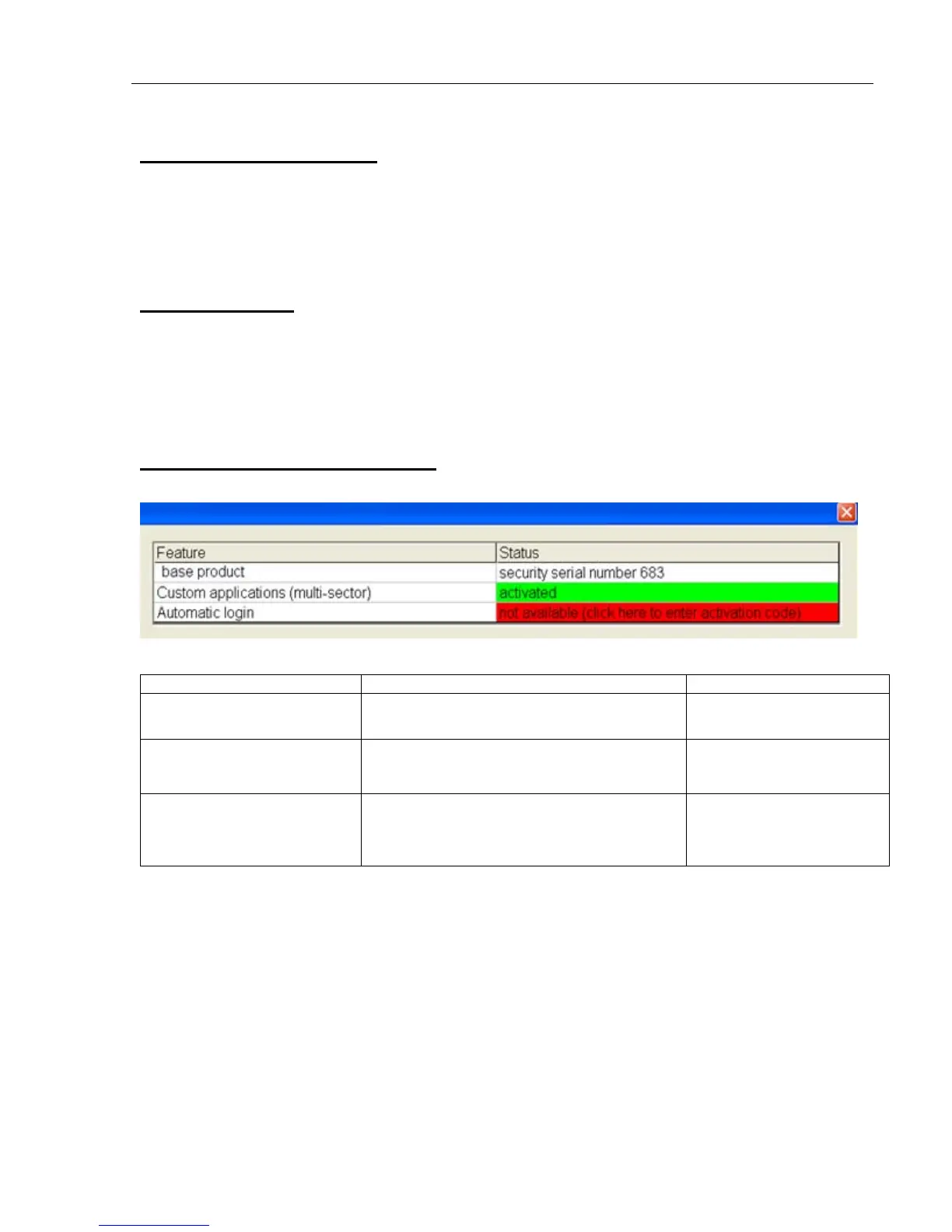 Click this button to view a list of optional features and the status of each feature: