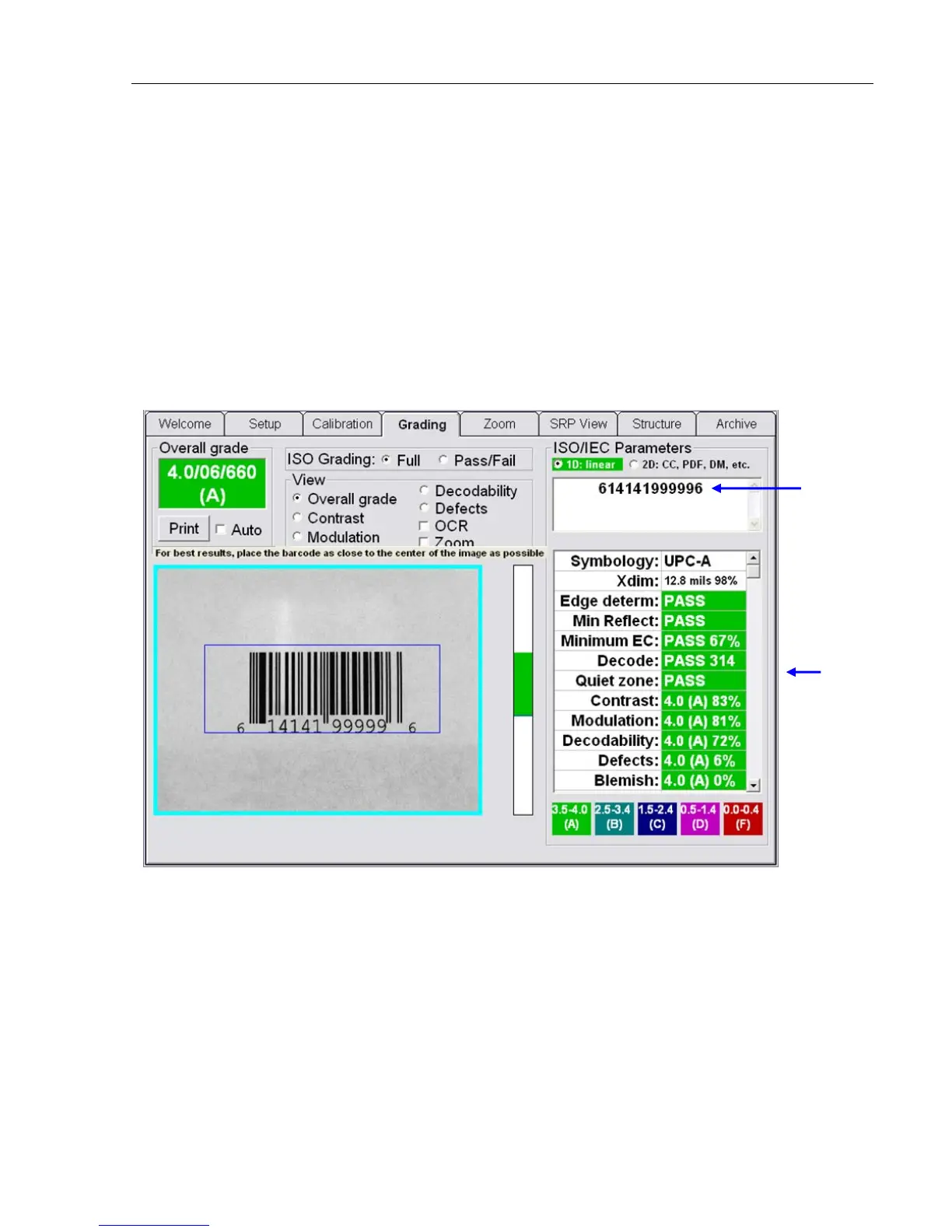 a barcode has a certain grade. There are numerous parameters listed, depending on the symbology. Use