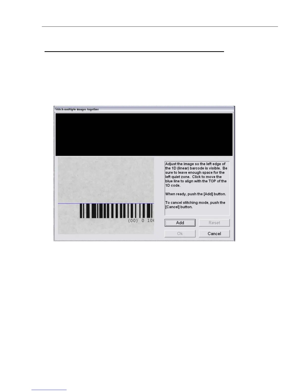 The Stitching feature is used to grade barcode labels that are too wide for the field of view. Follow the