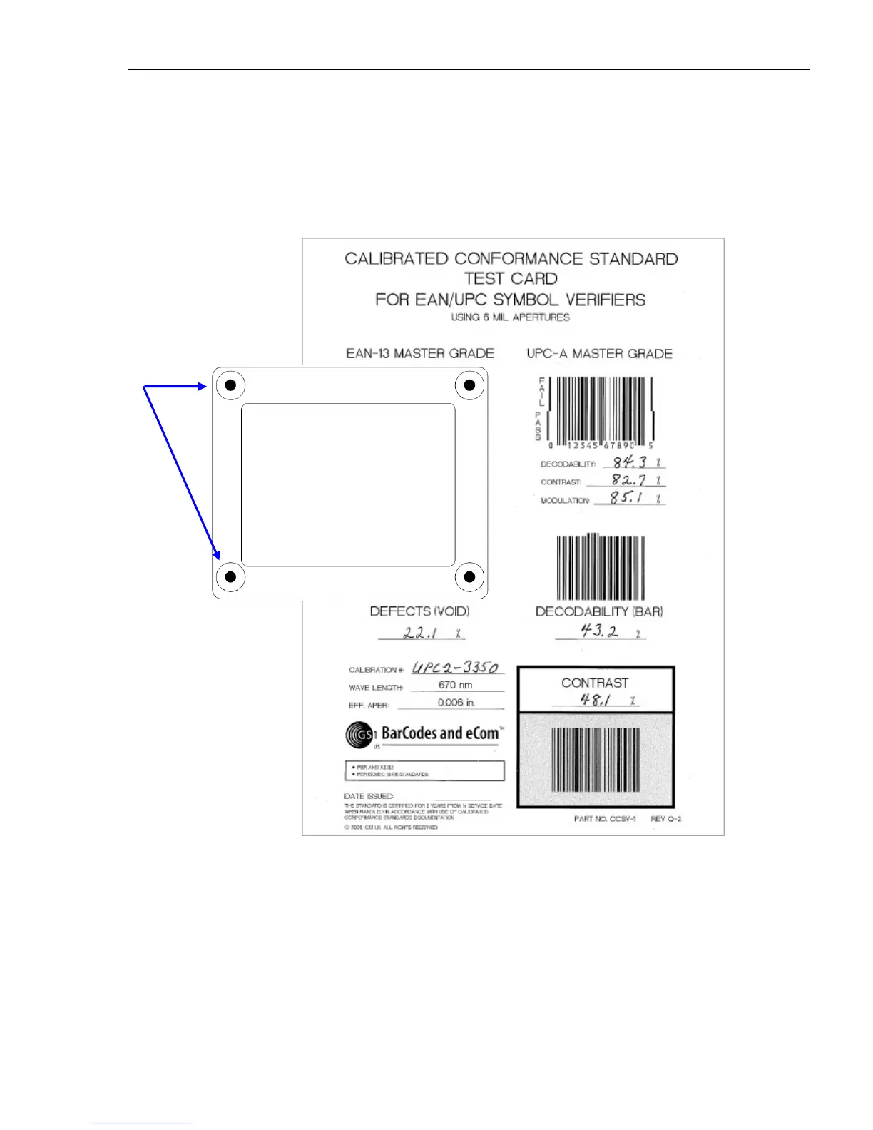 place and prevent movement of the test card. See example of Master Grade barcodes above. It is