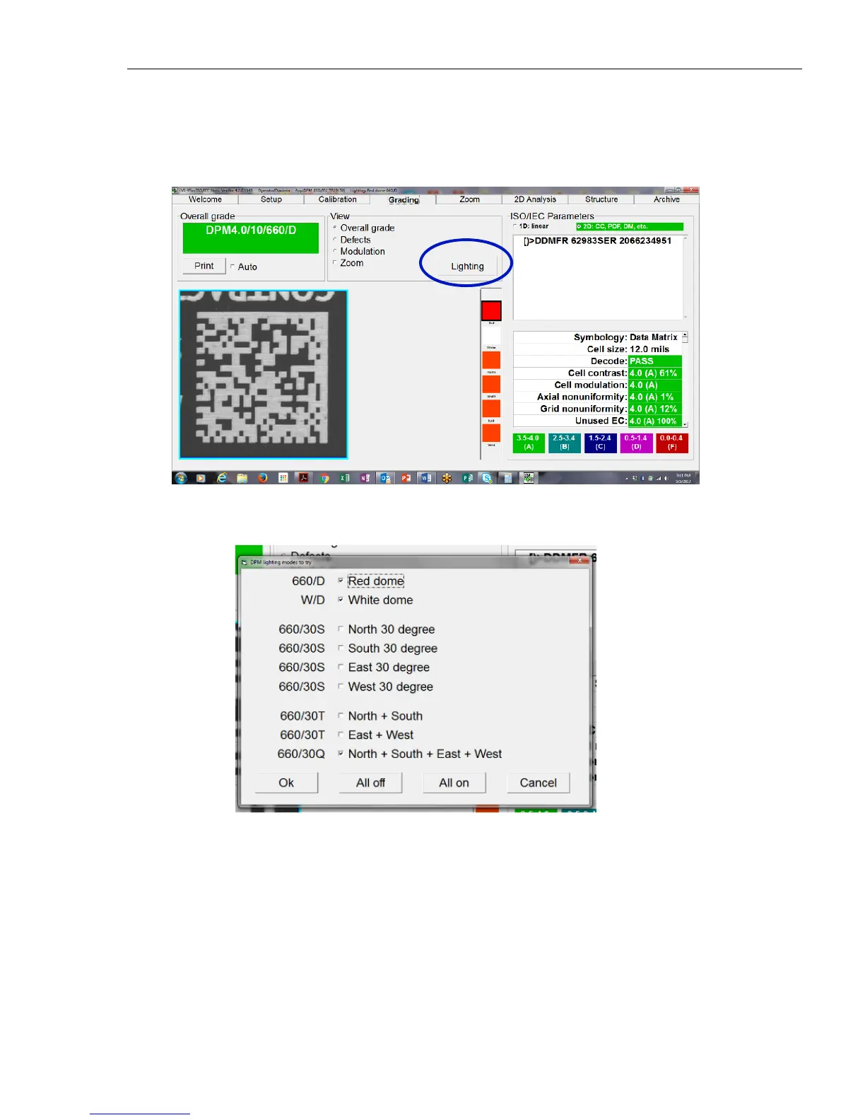 1. While viewing the Grading Screen, hold the verifyer trigger switch in. The target DPM symbol then