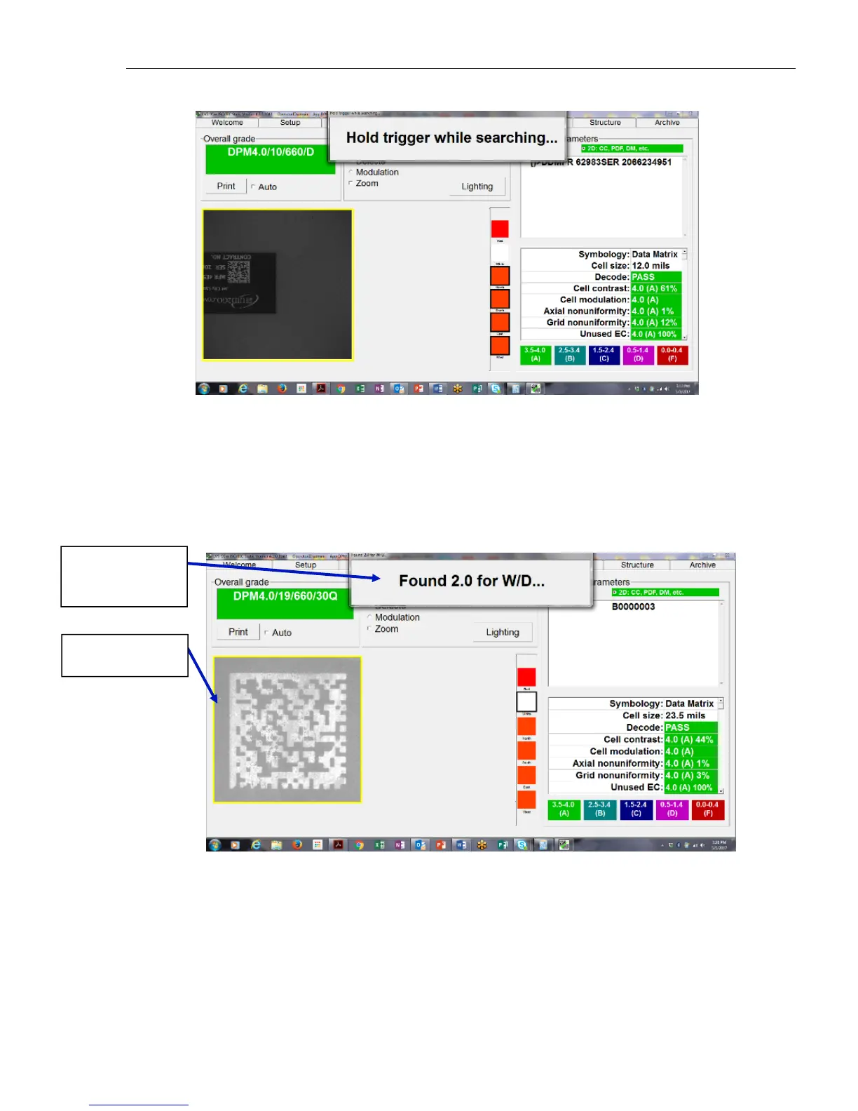 Once software has found the DPM symbol, the screen zooms in (magnify) on the symbol. The software