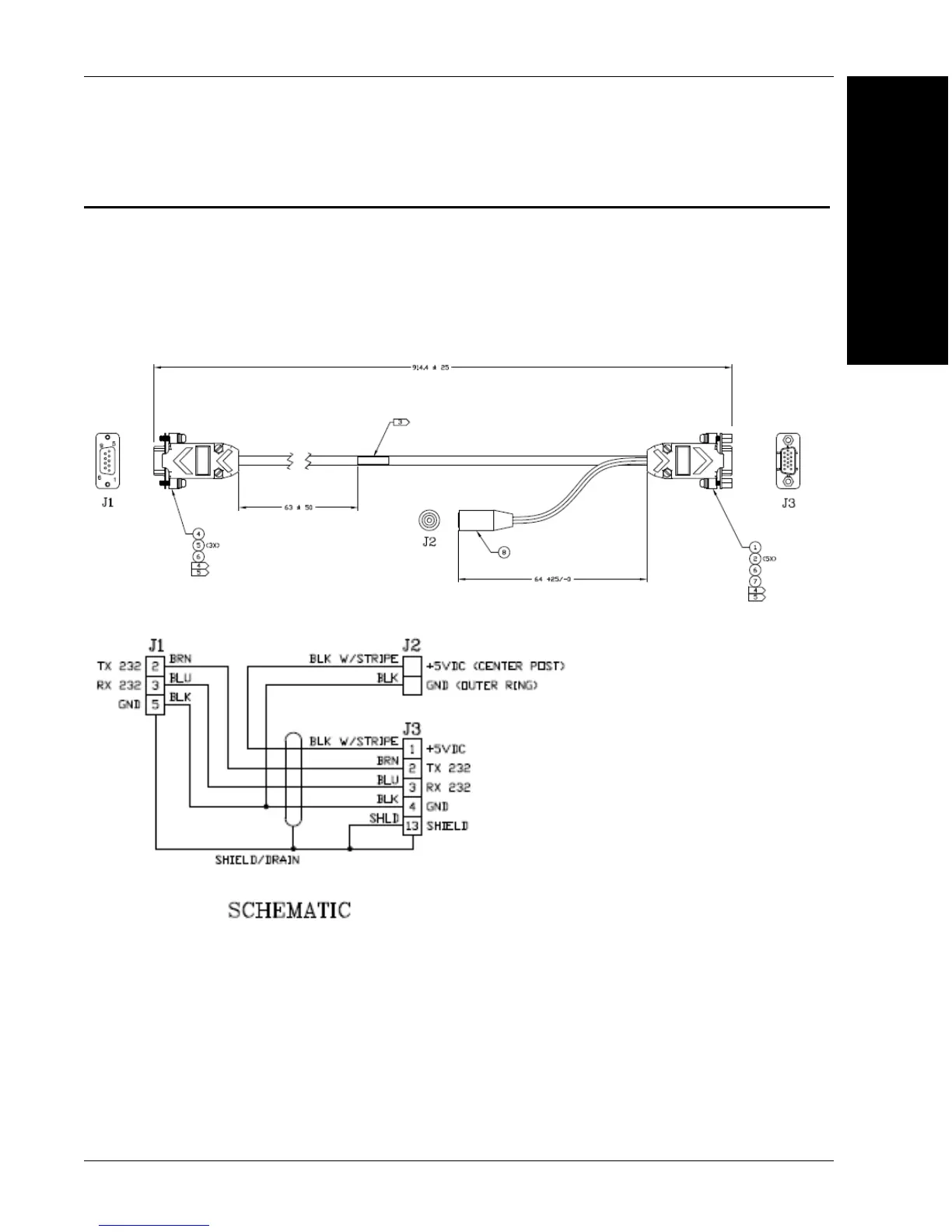 socket connector (J1) and the other end a DB15 (J3) extended Power/RS-232 (J2). This