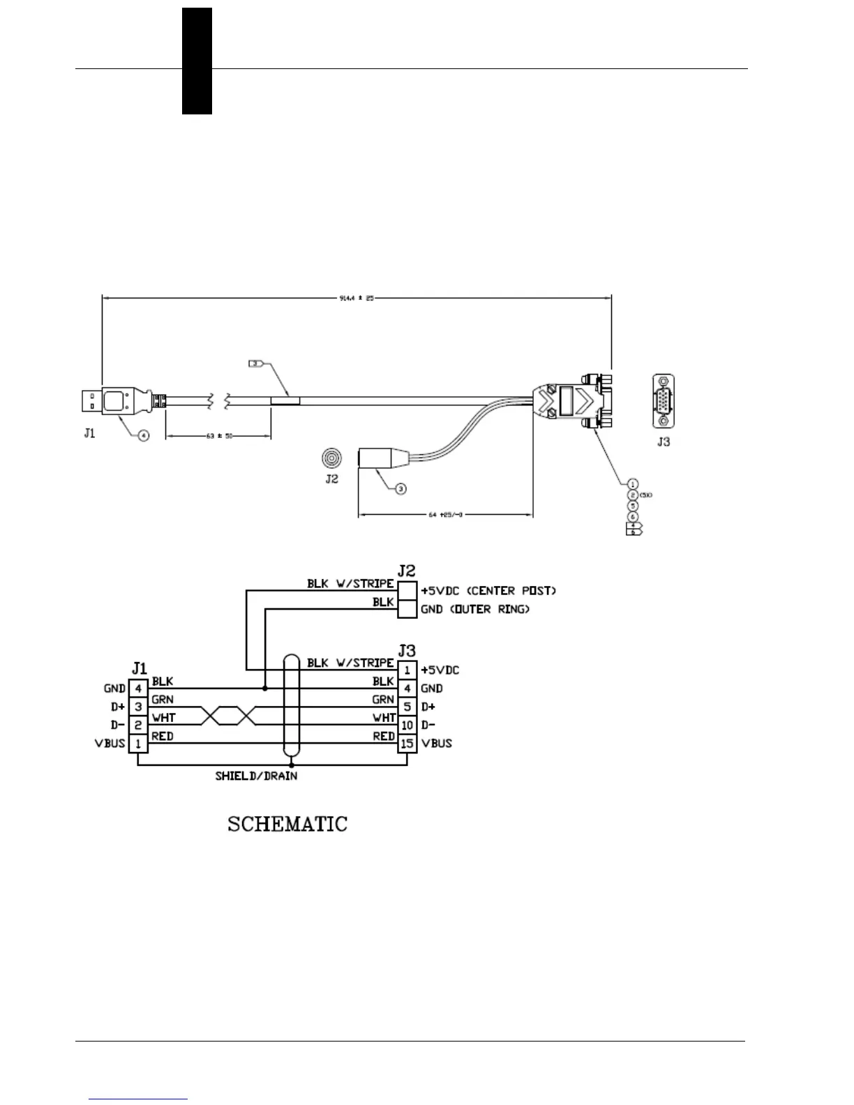 connector(J1) and the other end a DB15 (J3) extended power/RS-232 (J2). This cable is