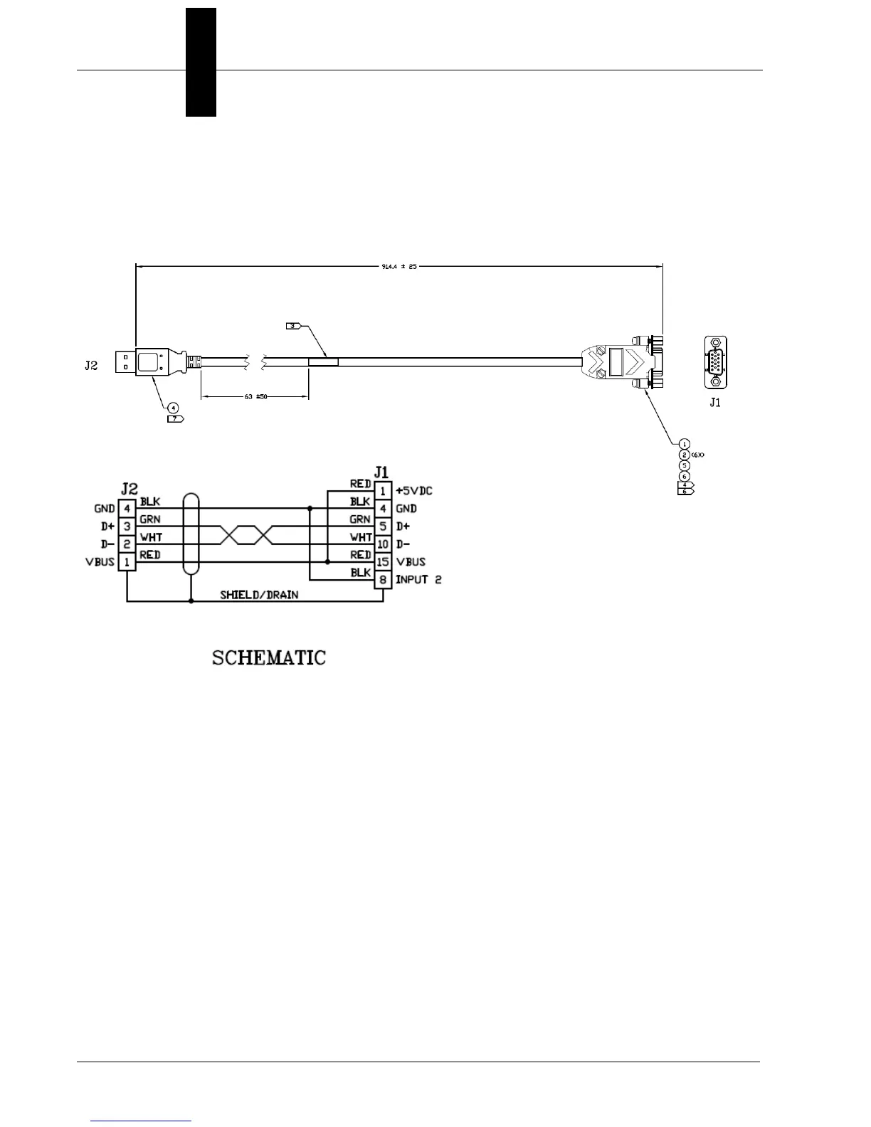 a 15-pin D-Sub socket (J1) and the other end is a USB plug (J2). This cable is used for