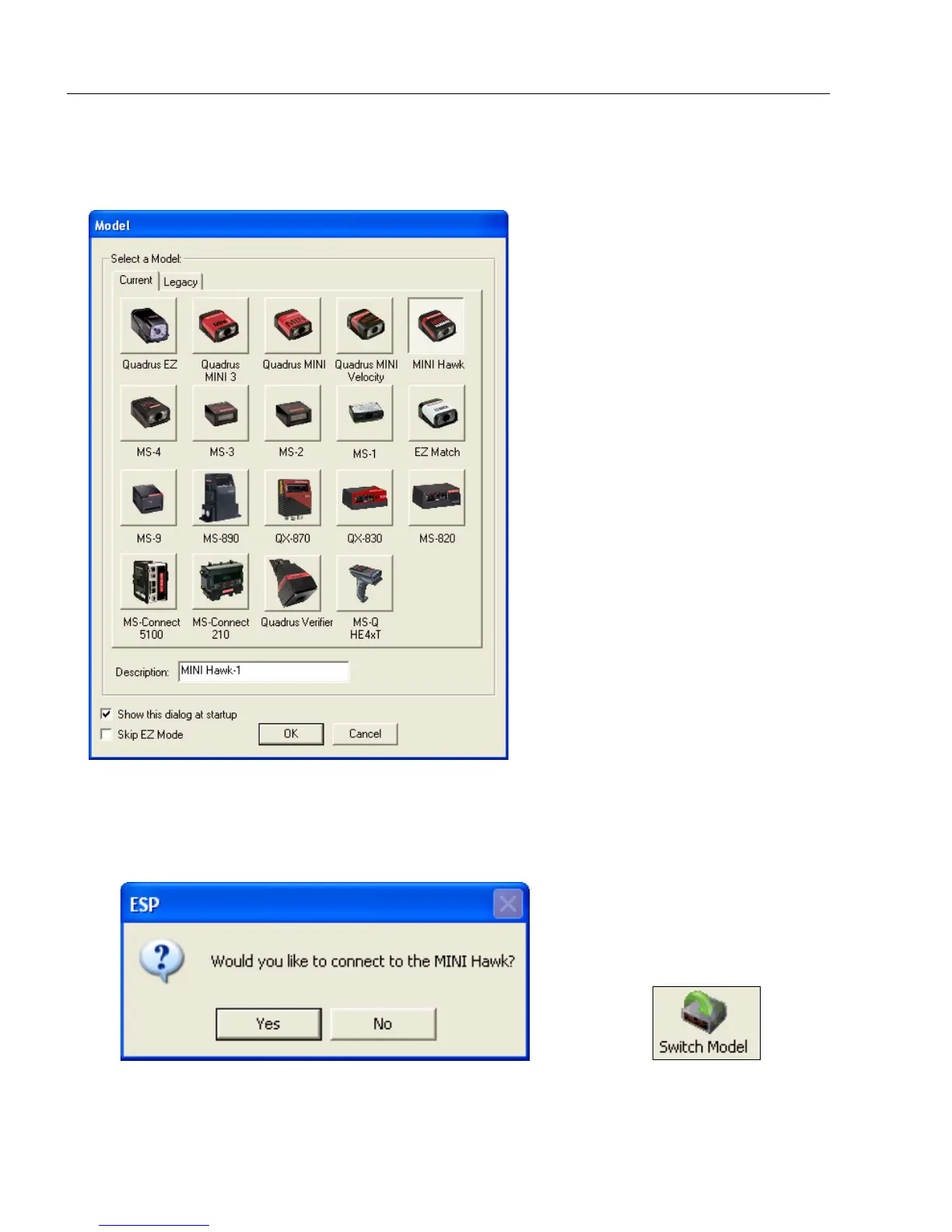 Note: If you need to select another model later, click the Switch Model button near