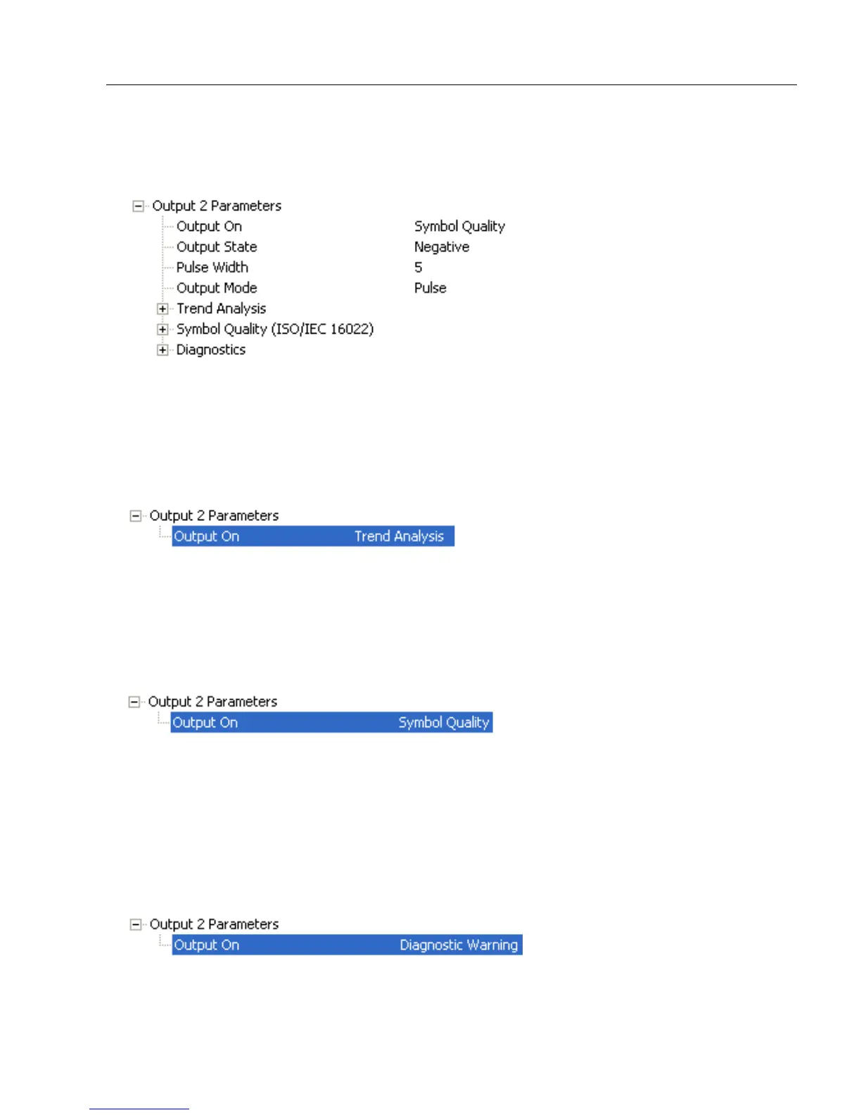 Note: Output On under Output 2 Parameters must be set to Symbol Quality for this
