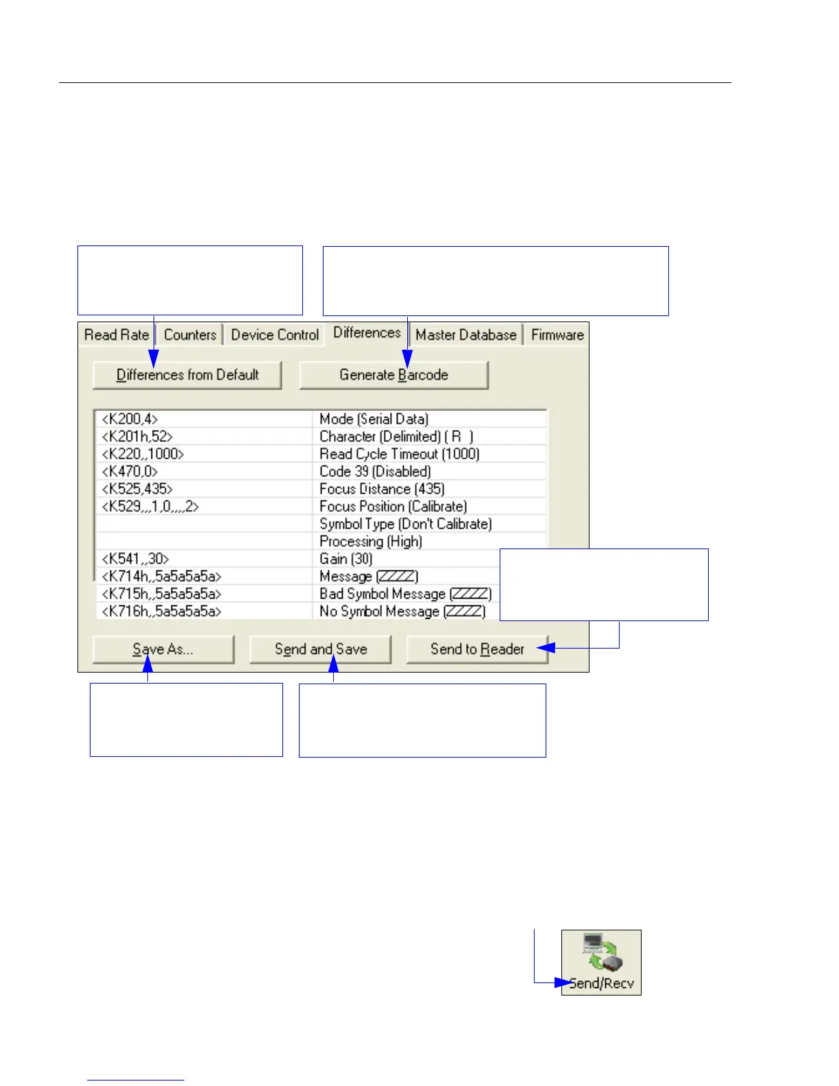 imager and Receive Reader Settings via the Send/Recv button on the toolbar.