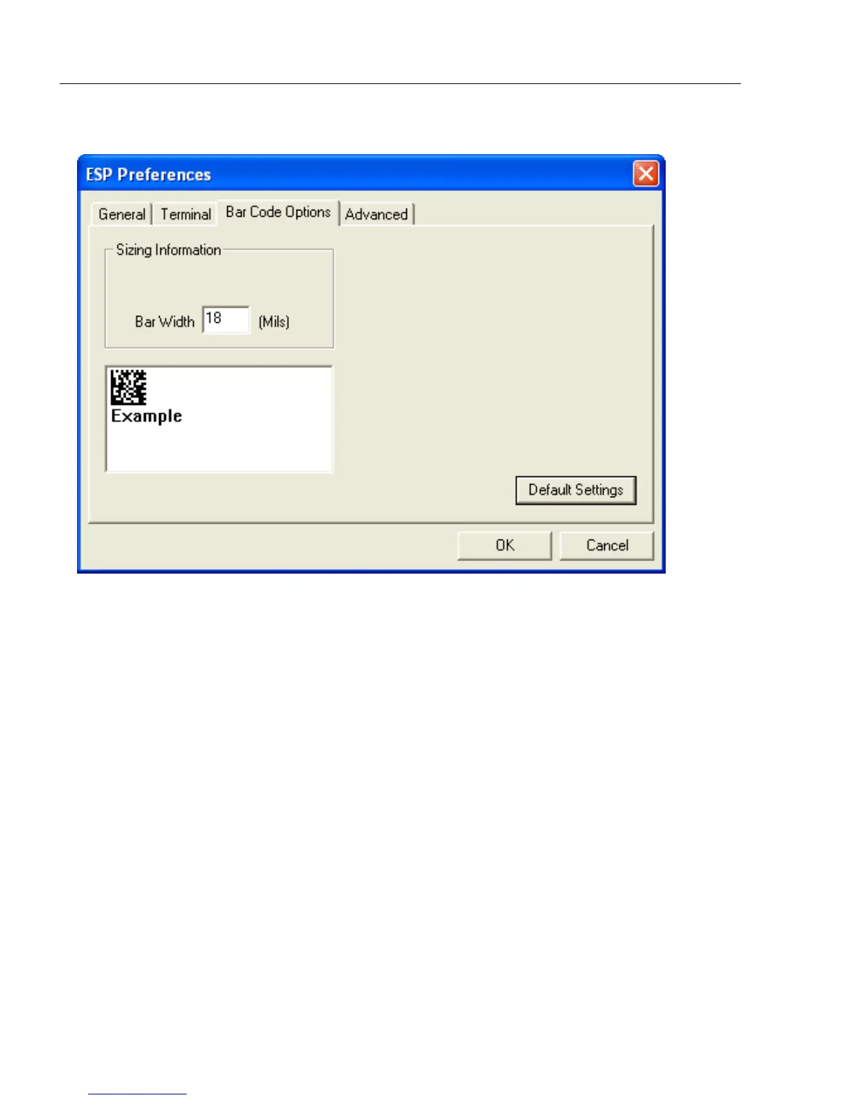 The Bar Code Options dialog allows you to set the size of user-created symbols.