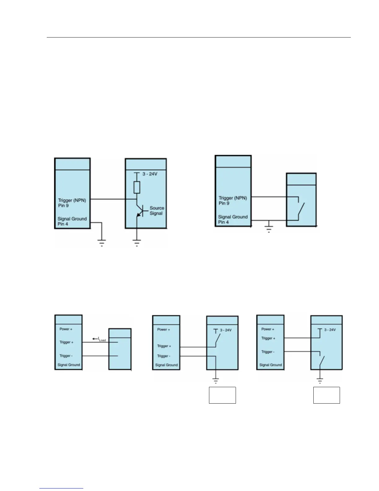 “Trigger –”. If a PNP source is used, “Trigger –” must be connected to “signal ground”. If an