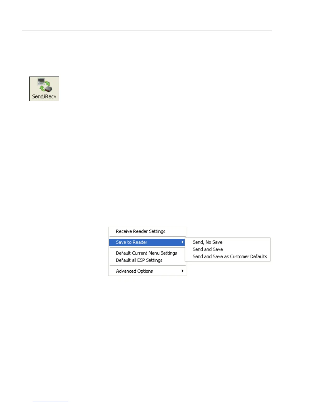 To a cces s Receive, Save, and Default options, click the Send/Recv button. You can also