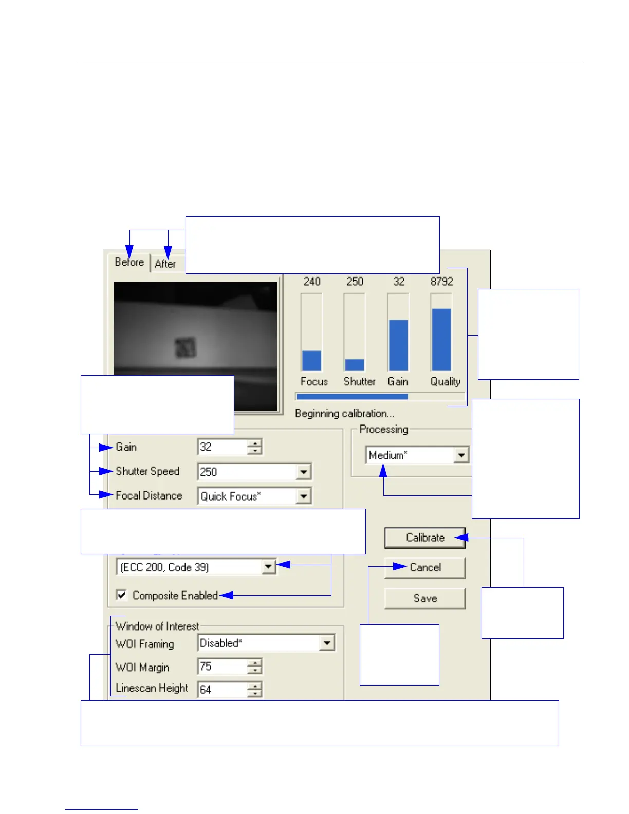 The Window of Interest section of the Calibration interface allows the user to make precise adjustments