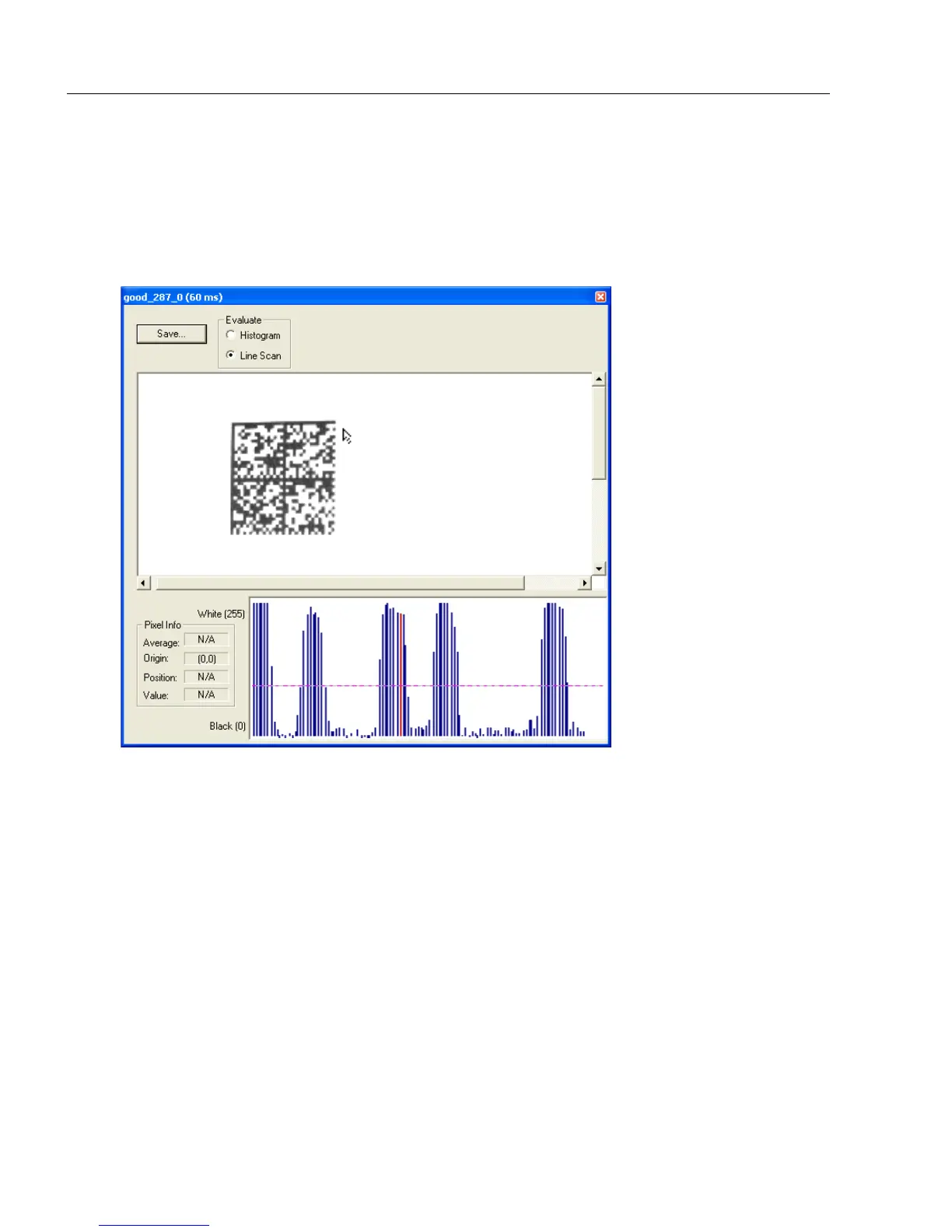 As with the histogram, the line scan compares light and dark pixels, but in a spatial distribution