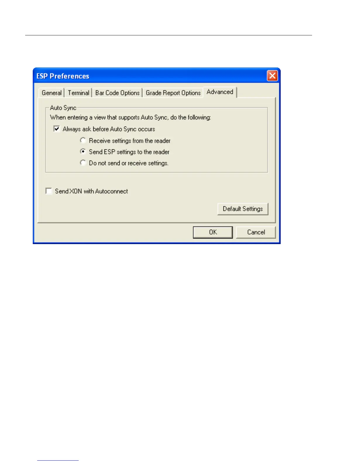 The Auto Sync dialog at the top of the Advanced tab allows you to determine whether
