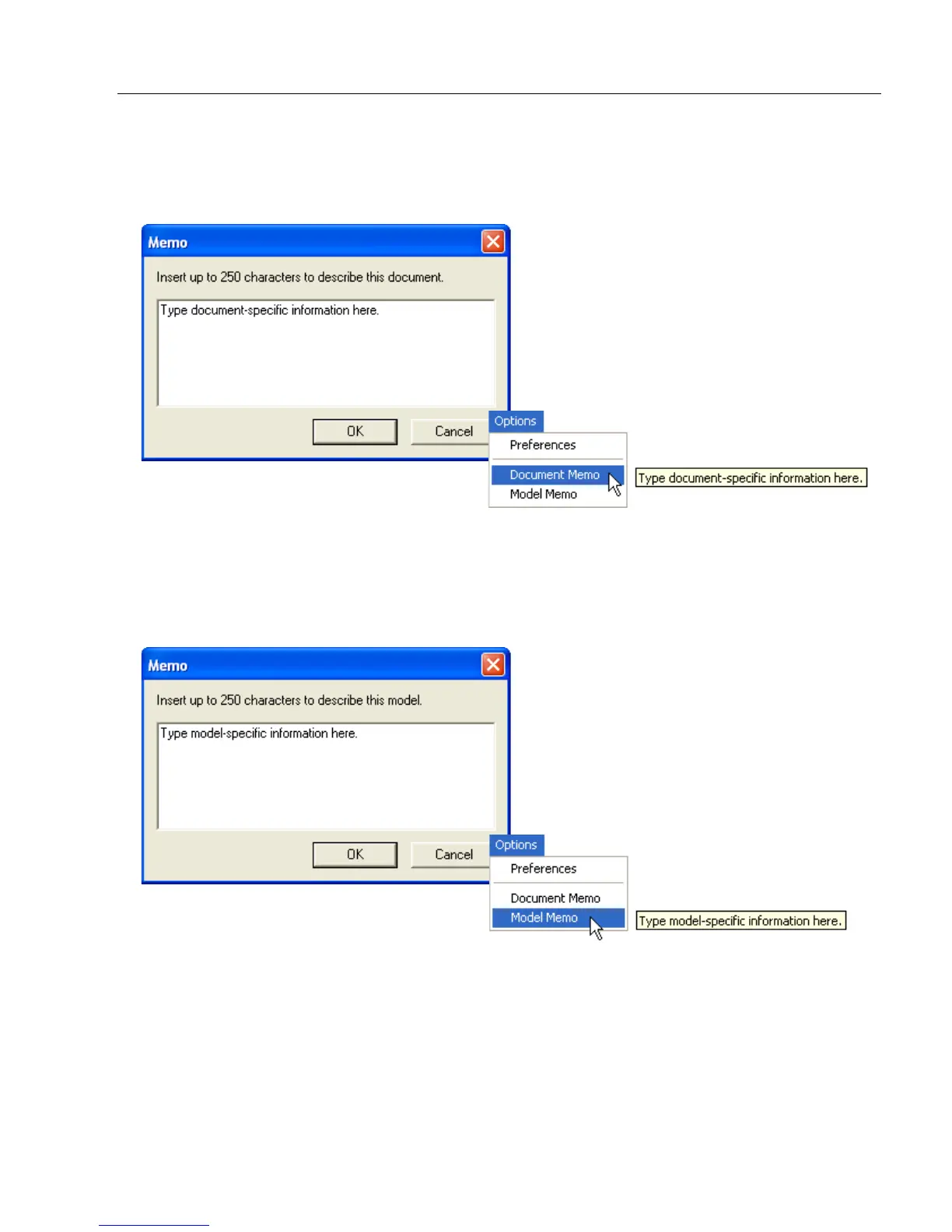 the Options menu. Memos created in Model Memo are specific to the model enabled