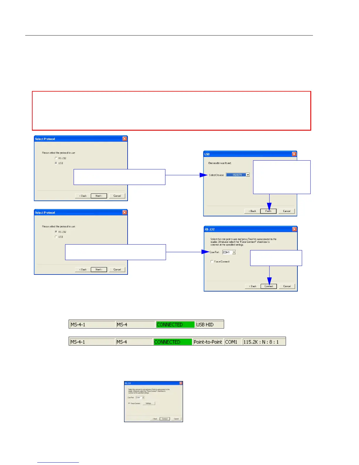 Important: If you are using an RS-232 interface and your connection attempt fails, click