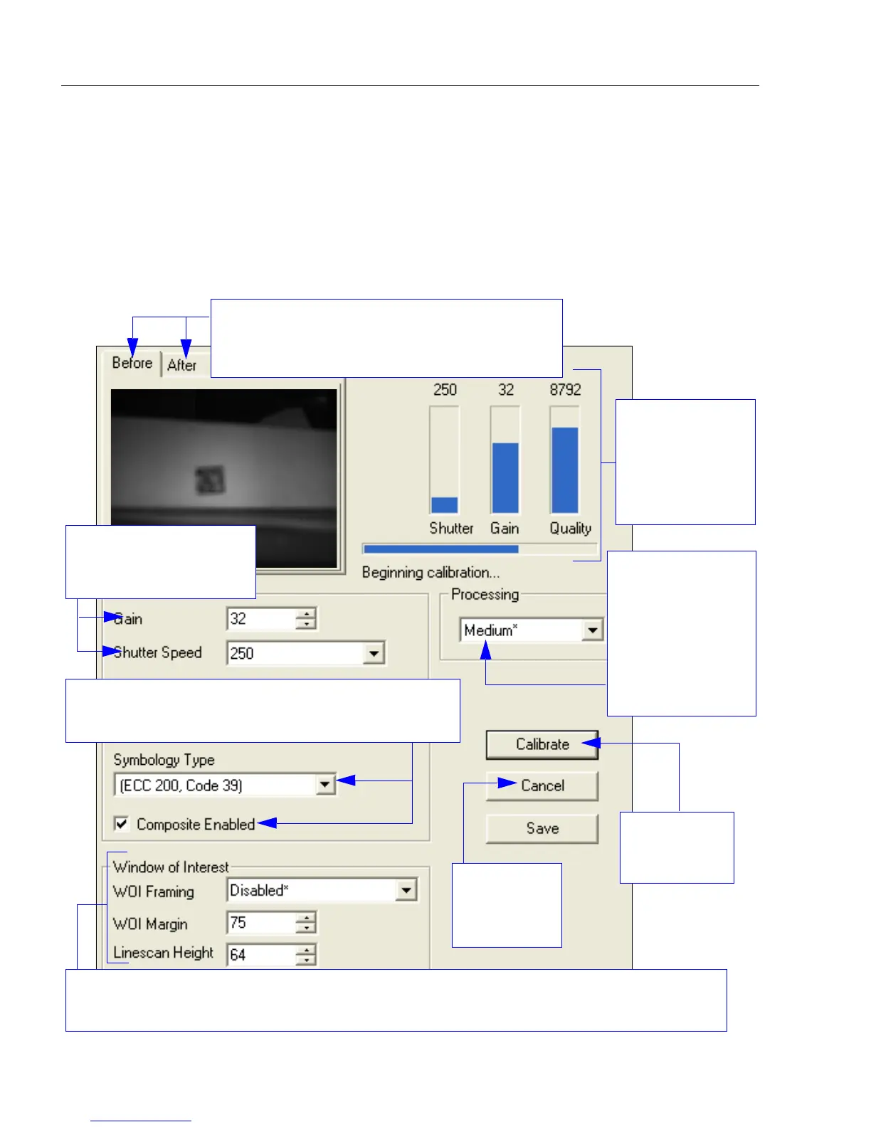The Window of Interest section of the Calibration interface allows the user to make precise adjustments