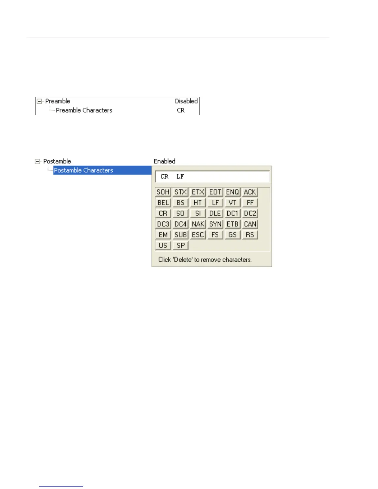 Allows the user to define up to four postamble characters that can be added to the end of