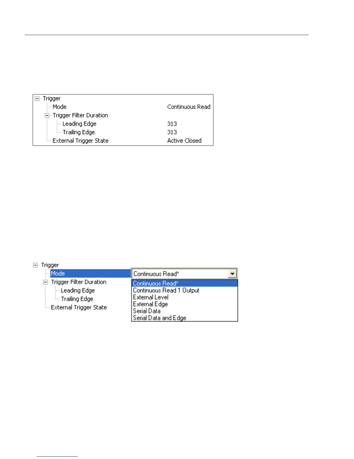 In Continuous Read, trigger input options are disabled, the scanner is always in the read