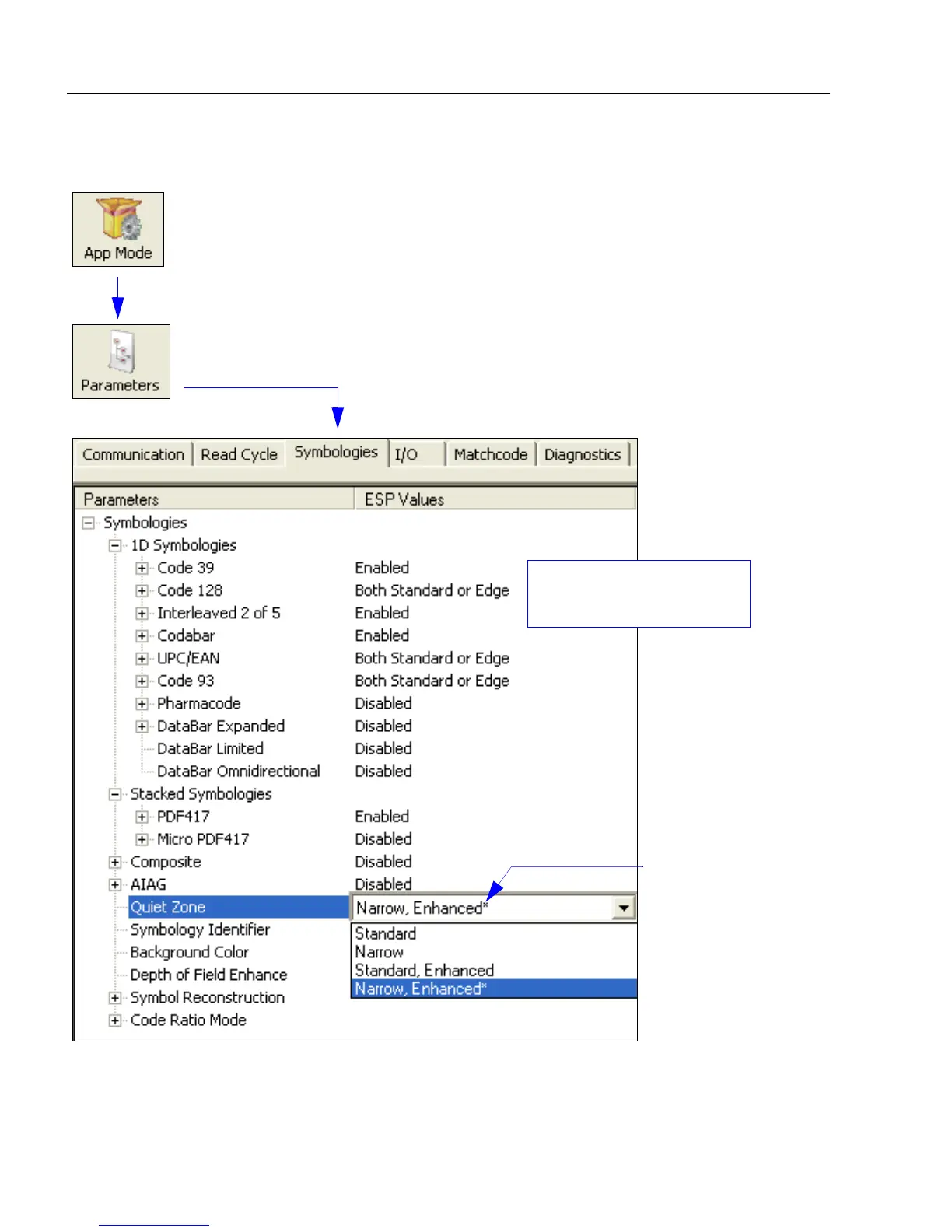 Note: Symbologies settings can also be sent to the scanner from ESP’s Terminal using