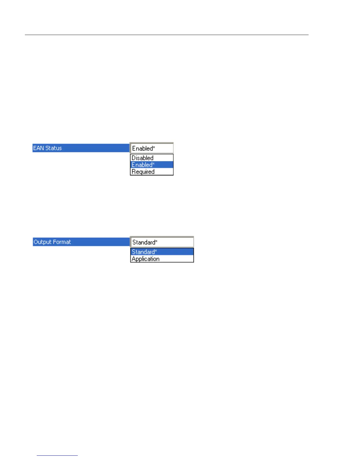 Note: Code 128 status must be enabled for EAN status to be active.