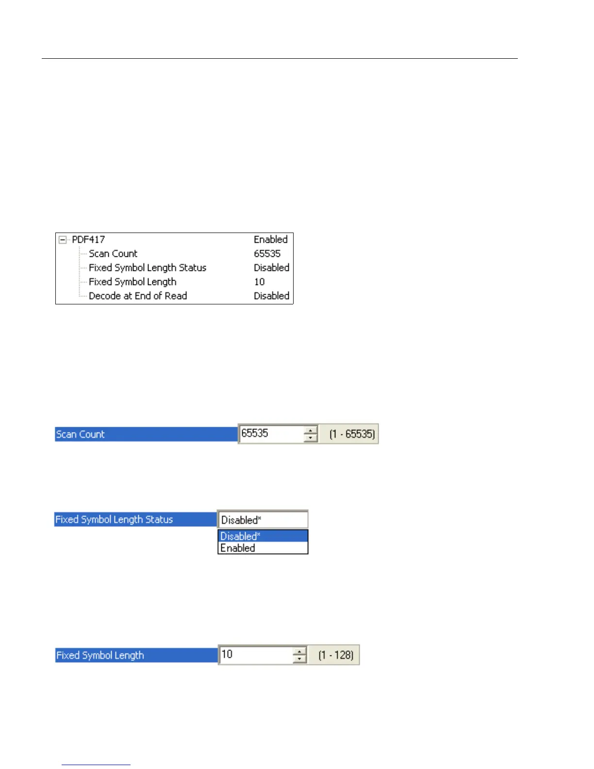 When Enabled, the scanner will reject any PDF417 symbol that does not match the Fixed